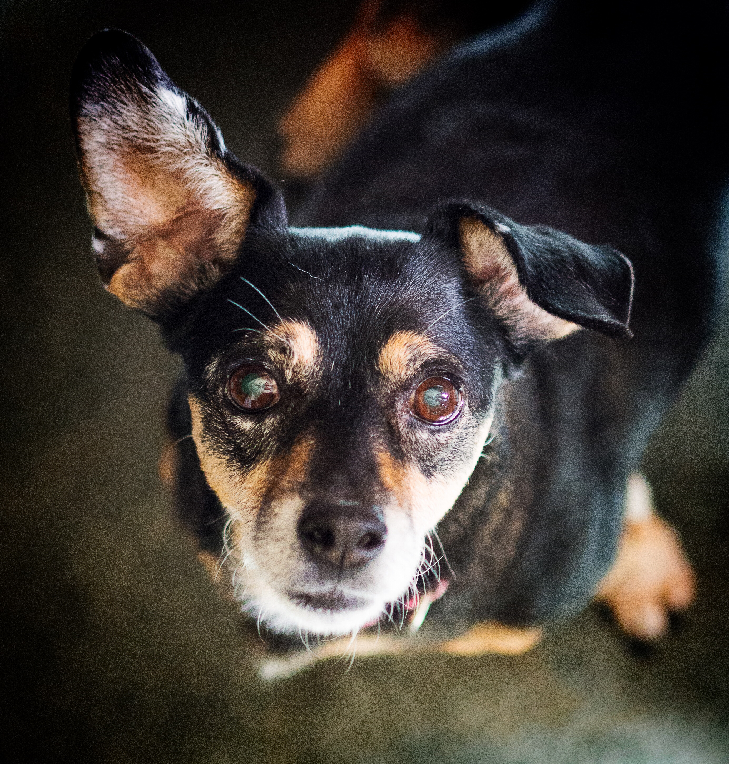 My two hound mixes have been dead for a couple of years now, and all I’m left with is this terrier-chihuahua something-or-other who occasionally looks more like a cartoon rendering than an actual dog. Battle-scarred, bug-eyed, and half-deaf, she’s adapted over the years by pushing more and more of her consciousness into her nose.
